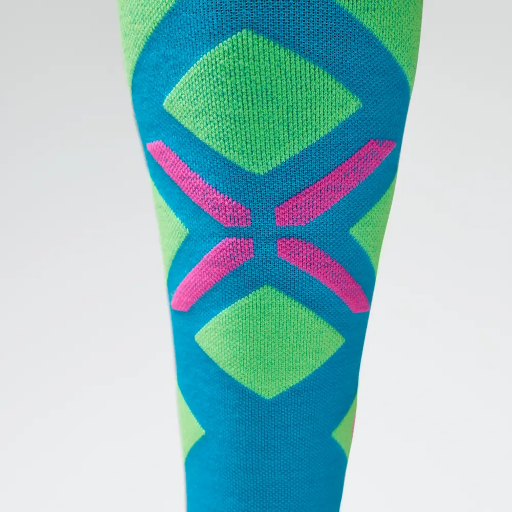 Die STOX Merino Ski Kompressionsstrümpfe für Damen bieten eine leistungsstarke Kombination aus Wärme, Komfort und Unterstützung im Schnee. Die feine Merinowolle hält die Füße trocken und warm, während die graduelle Kompression (Klasse 2) die Durchblutung optimiert und Muskelermüdung reduziert.